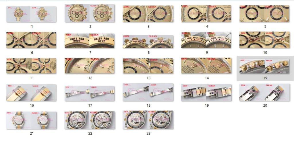 今回も、Cleanファクトリーは純正の新型デイトナ(スチール、余文楽、パンダ、コンビ2色)を同時に6本購入し、徹底的に検証しました。