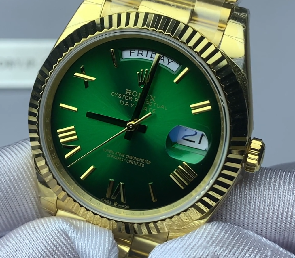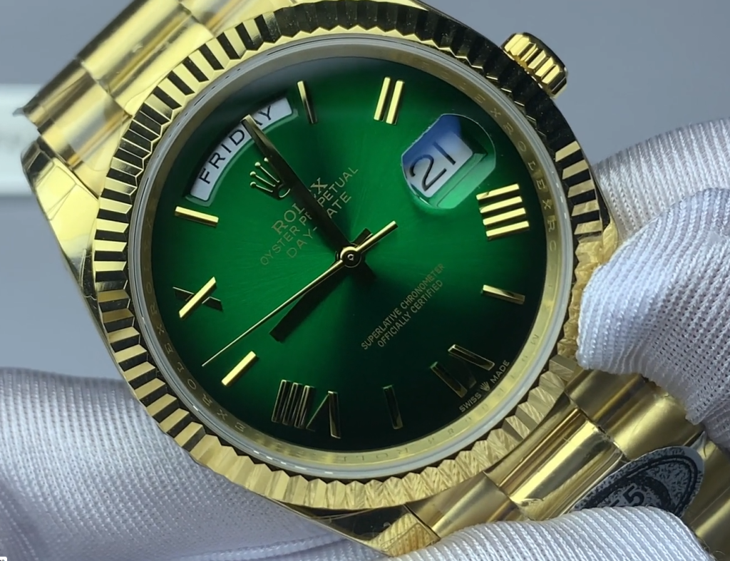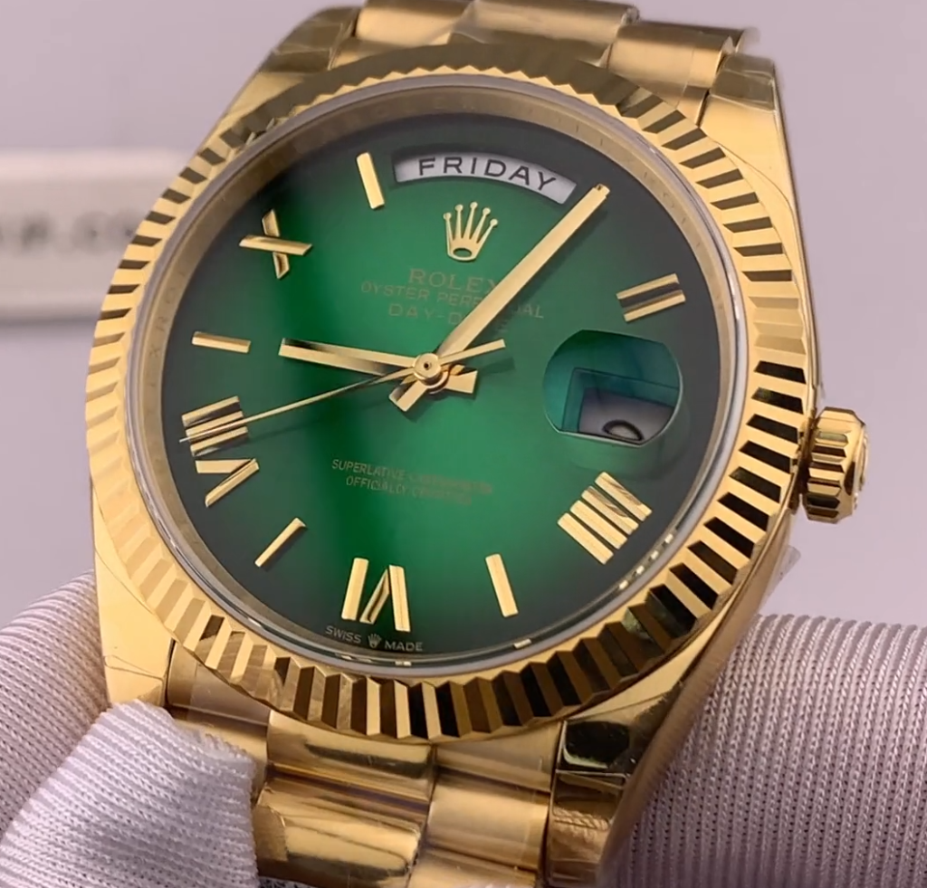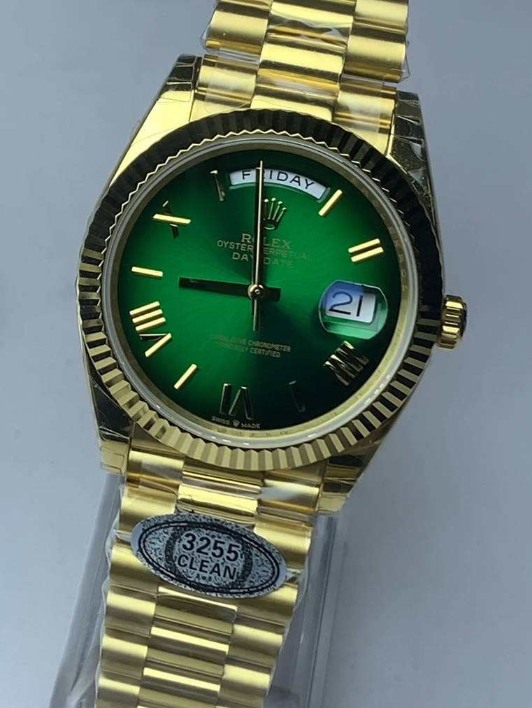 「いつかはデイデイトを」と考えていたあなた。その「いつか」を今に変えてみませんか?手首に感じるずっしりとした重みと、グリーンオンブレの輝き。それは、あなたの日常をより豊かに、より刺激的なものに変えてくれるはずです。