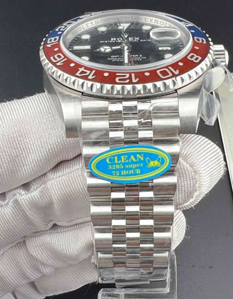 特に赤青のセラクロムベゼル(通称ペプシベゼル)にブラックダイアルを組み合わせたこのモデルは、正規品市場でも入手困難な超人気モデル。 正規店では数年待ちリストが続くことも珍しくなく、プレミア価格で取引されるほどです。 そんな「憧れのペプシ」を、CLEANファクトリーが驚異的なクオリティで再現。 多くのコレクターや愛好家から「これぞ本物に最も近い復刻」と絶賛されています。