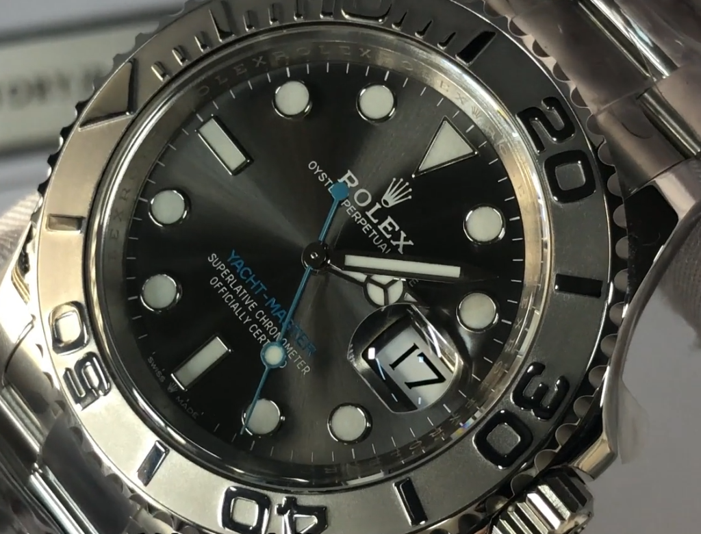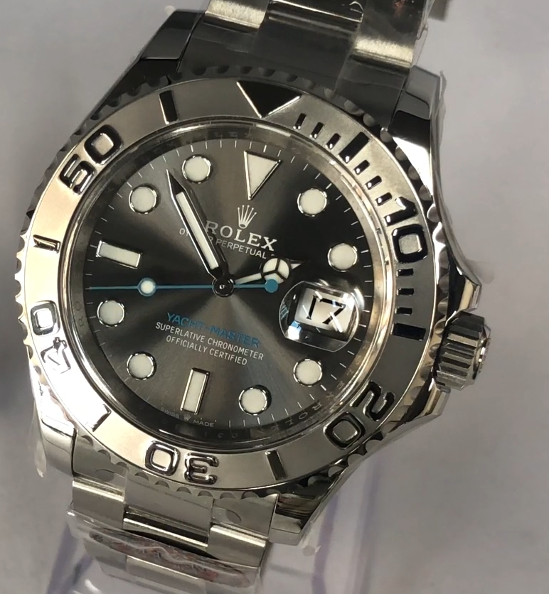 夕暮れのマリーナに佇むヨットのように、静かに輝く一本の時計。それが、CLEANファクトリーの誇るロレックス ヨットマスター40 Ref.126622、プラチナベゼルに包まれたグレー文字盤の逸品です。