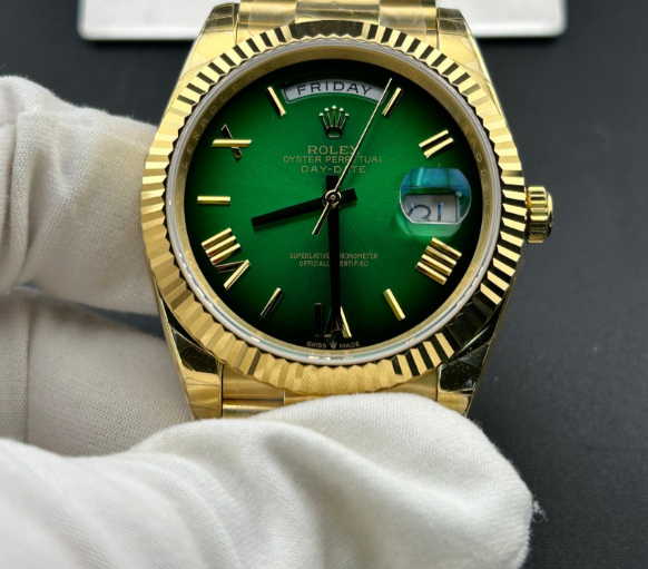 こんにちは、皆さん!いつも当ブログをご覧いただき、ありがとうございます。ロレックスの世界に魅了される日本人にとって、腕時計はただの時間を知る道具ではなく、人生のアクセントとなる存在ですよね。今日お届けするのは、CLEANファクトリーが誇る最高峰の逸品– ロレックスデイデイトイエローゴールド228238(40mm、グリーンオンブレ文字盤、フルーテッドベゼル、プレジデントブレスレット)。1:1の精密さで再現されたこのモデルは、まるで本物のプレステージを身に纏うような贅沢な輝きを放ちます。忙しい日常の中で、こんな一品があれば、心まで豊かになるはず。さっそく、その魅力を深掘りしていきましょう!