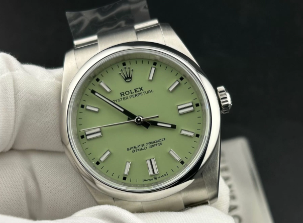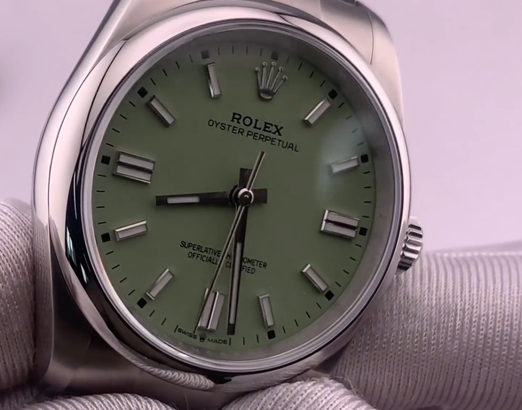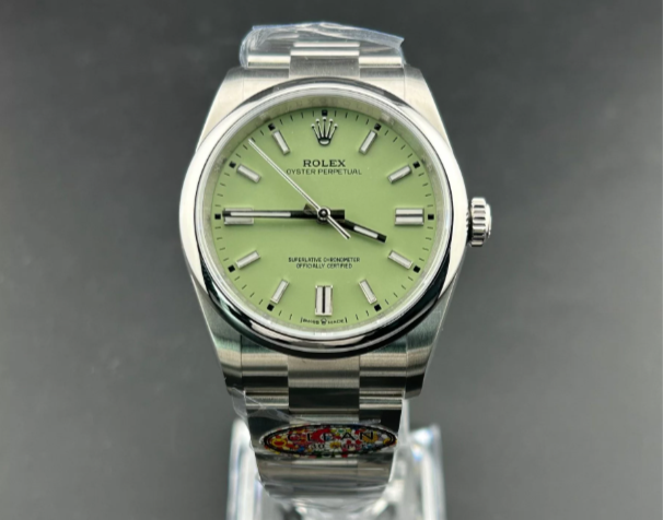 そんな本物志向の日本人の審美眼に、CLEANファクトリーはこのピスタチオダイアルを完璧に再現しました。CLEANは長年、ROLEXのOyster Perpetualシリーズで最も評価の高いファクトリーの一つとして知られています。特にダイアルの質感、色再現度、ケースの仕上げにおいて、他を圧倒するクオリティを誇ります。