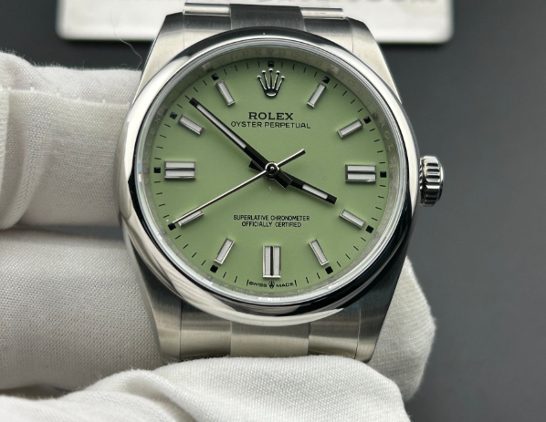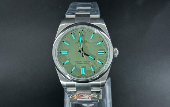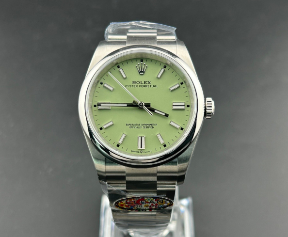 2025年に登場したこのピスタチオダイヤルは、ロレックスの伝統的なシンプルさを保ちつつ、控えめながらも鮮やかなグリーンが光を浴びるたびに柔らかく表情を変える、まさに「大人の遊び心」を体現した一本です。日本人の美意識に深く響く「わびさび」のニュアンス——派手すぎず、しかし存在感を静かに放つ色合いが、ここに凝縮されています。