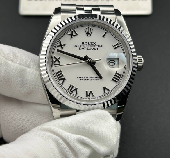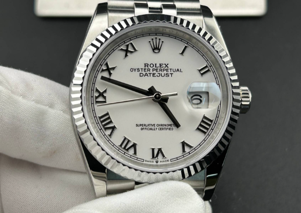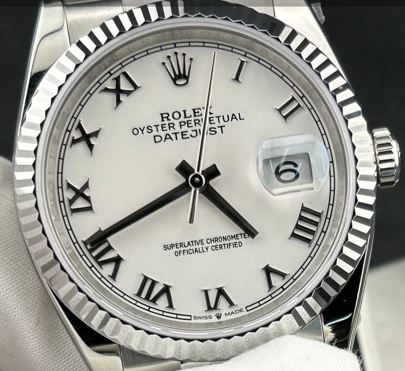 Ref.126234 36mm ホワイトローマ数字文字盤 フルーテッドベゼル ジュビリーブレス 正規品で今この組み合わせを新品で狙おうとすると、相当な待ち時間+プレミア価格が当たり前になっている超人気仕様です。