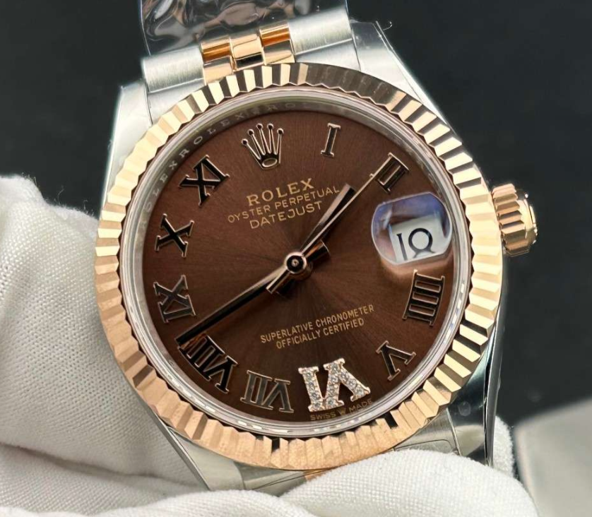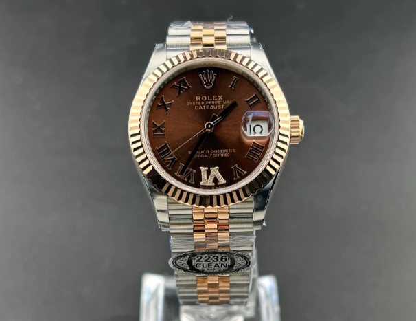 ROLEXのレディ デイトジャストは、女性向けの高級時計として長年支持を集めてきたモデルです。その中でも、参考番号278271はオイスタースチールと18Kエバーローズゴールド(Everose Rolesor)のコンビネーションを採用した31mmケースサイズのバージョン。CLEANファクトリーが1:1級の高精度で再現したこのモデルは、チョコレート文字盤、ローマン数字インデックス、フルーテッドベゼル、ジュビリーブレスレットを備え、上品さと実用性を兼ね備えた逸品です。
