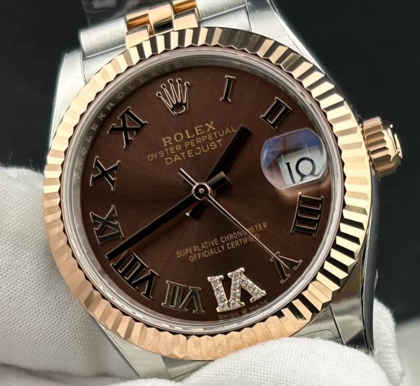 CLEANファクトリー製 ROLEX レディ デイトジャスト 278271 31mm コンビローズゴールド – チョコレート文字盤 / ローマン目盛り / フルーテッドベゼル / ジュビリーブレスレット
