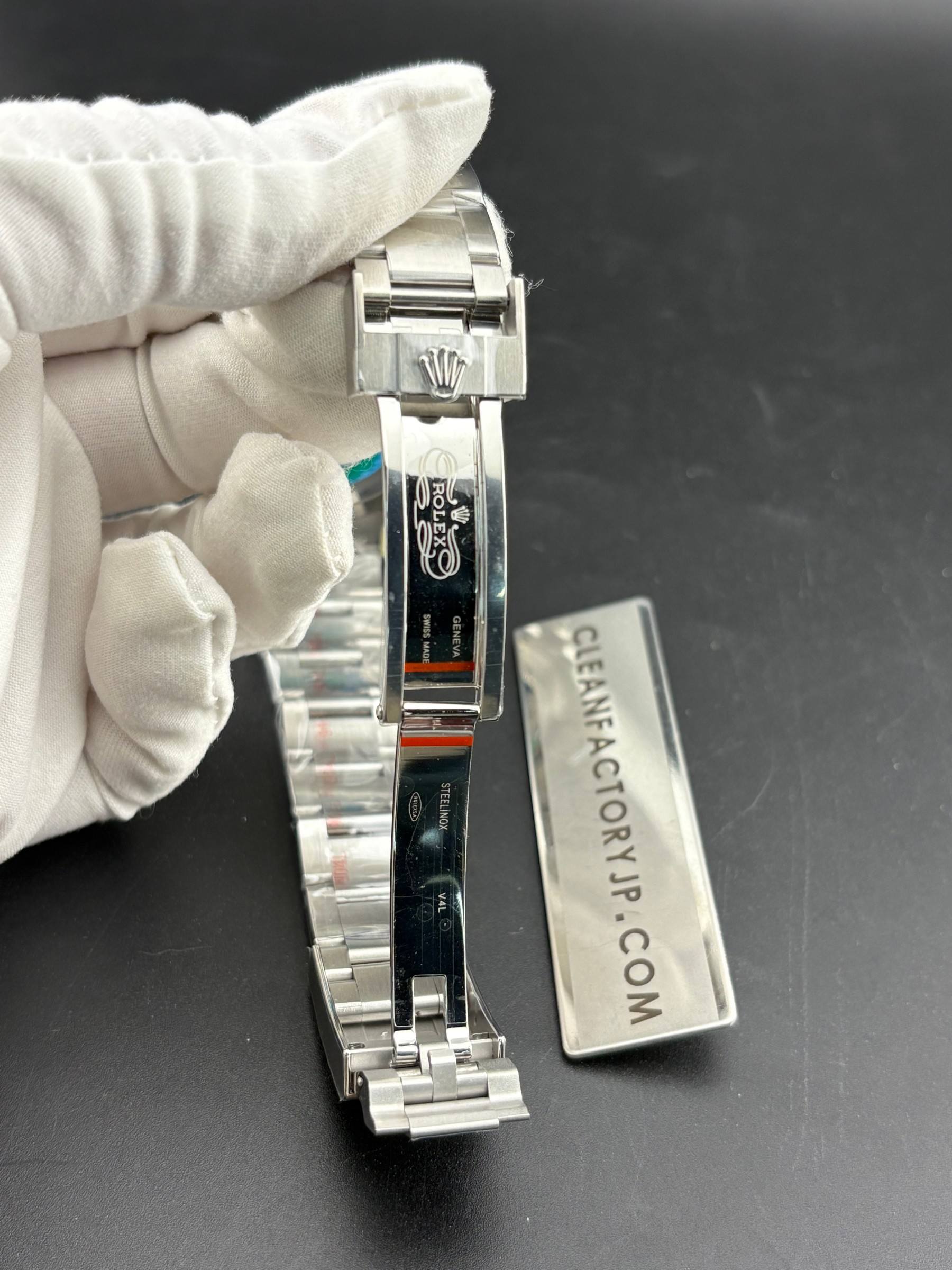 5:ケース:本物同様の904L高強度ステンレススチル素材を採用します。ケースの内側の刻字がはっきり見えて、時間表示の針はそれぞれの文字の位置に対応し、並びも綺麗で、文字盤と刻印のズレを避けています。ベルトとケースの接着部分に関してはCLEAN工場は完璧にできています、一コマ目を少し下に重心が行くような効果を出し、接着面の上がる角度等は正規品と一致し、より本物に近づくように制作されているだけではなく、腕によりピッタリハマるというのも初心にしてます。