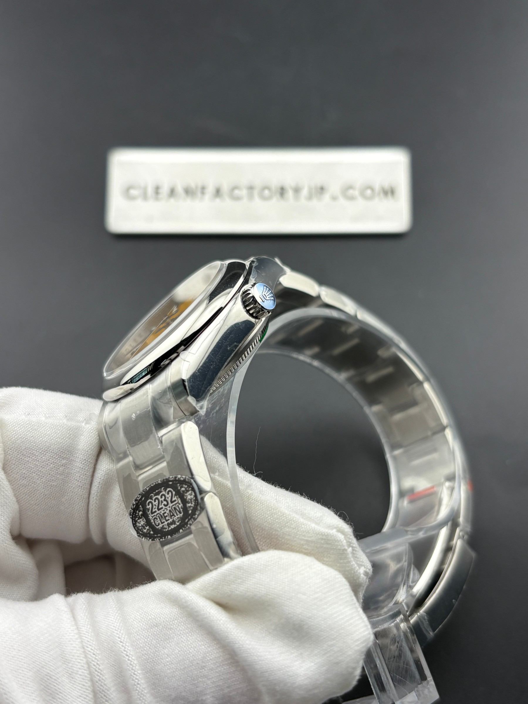 5:ケース:本物同様の904L高強度ステンレススチル素材を採用します。ケースの内側の刻字がはっきり見えて、時間表示の針はそれぞれの文字の位置に対応し、並びも綺麗で、文字盤と刻印のズレを避けています。ベルトとケースの接着部分に関してはCLEAN工場は完璧にできています、一コマ目を少し下に重心が行くような効果を出し、接着面の上がる角度等は正規品と一致し、より本物に近づくように制作されているだけではなく、腕によりピッタリハマるというのも初心にしてます。