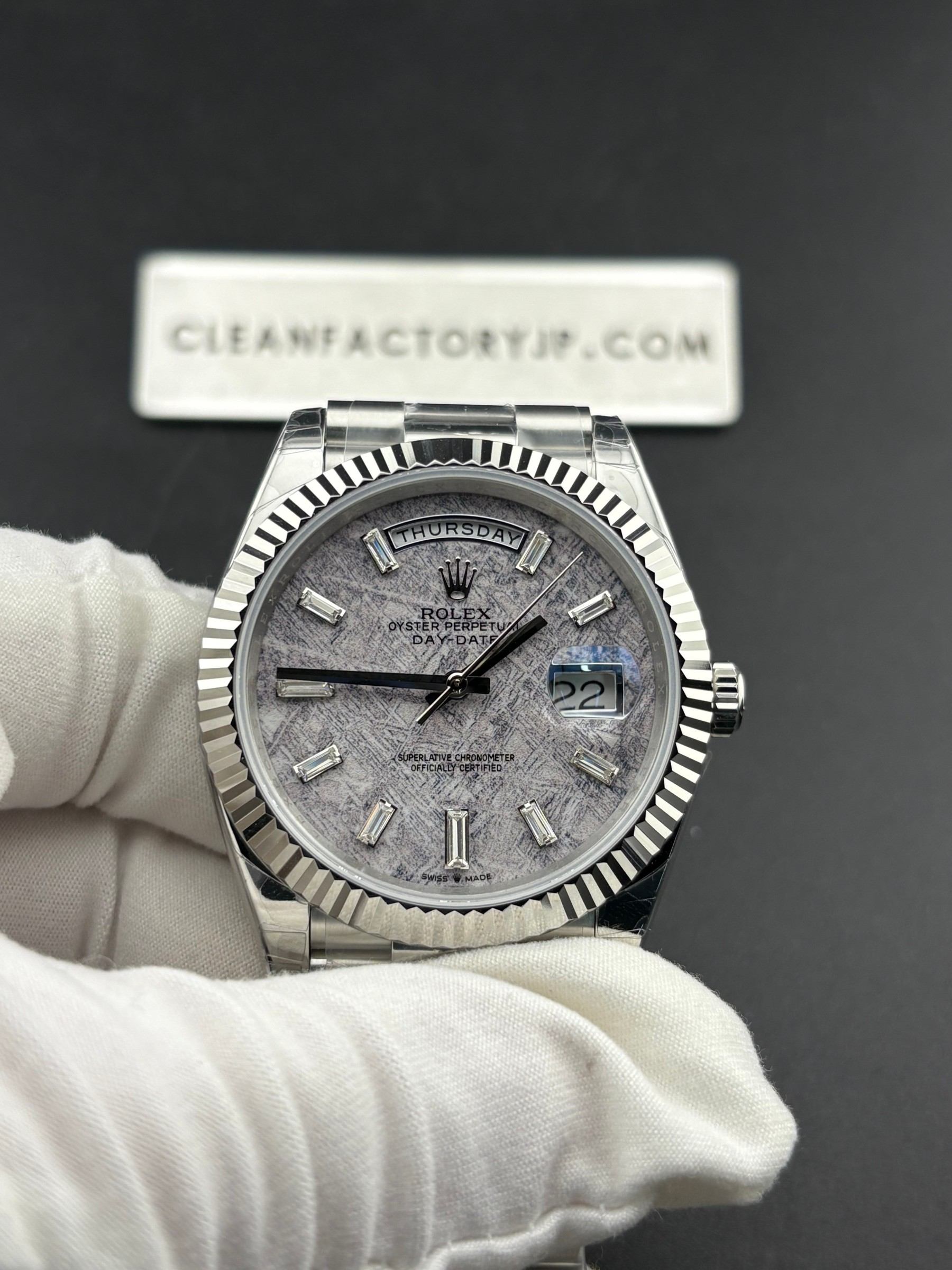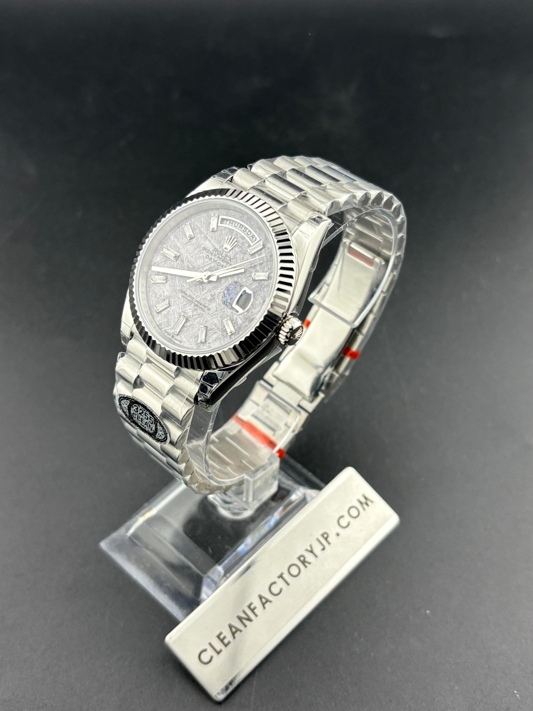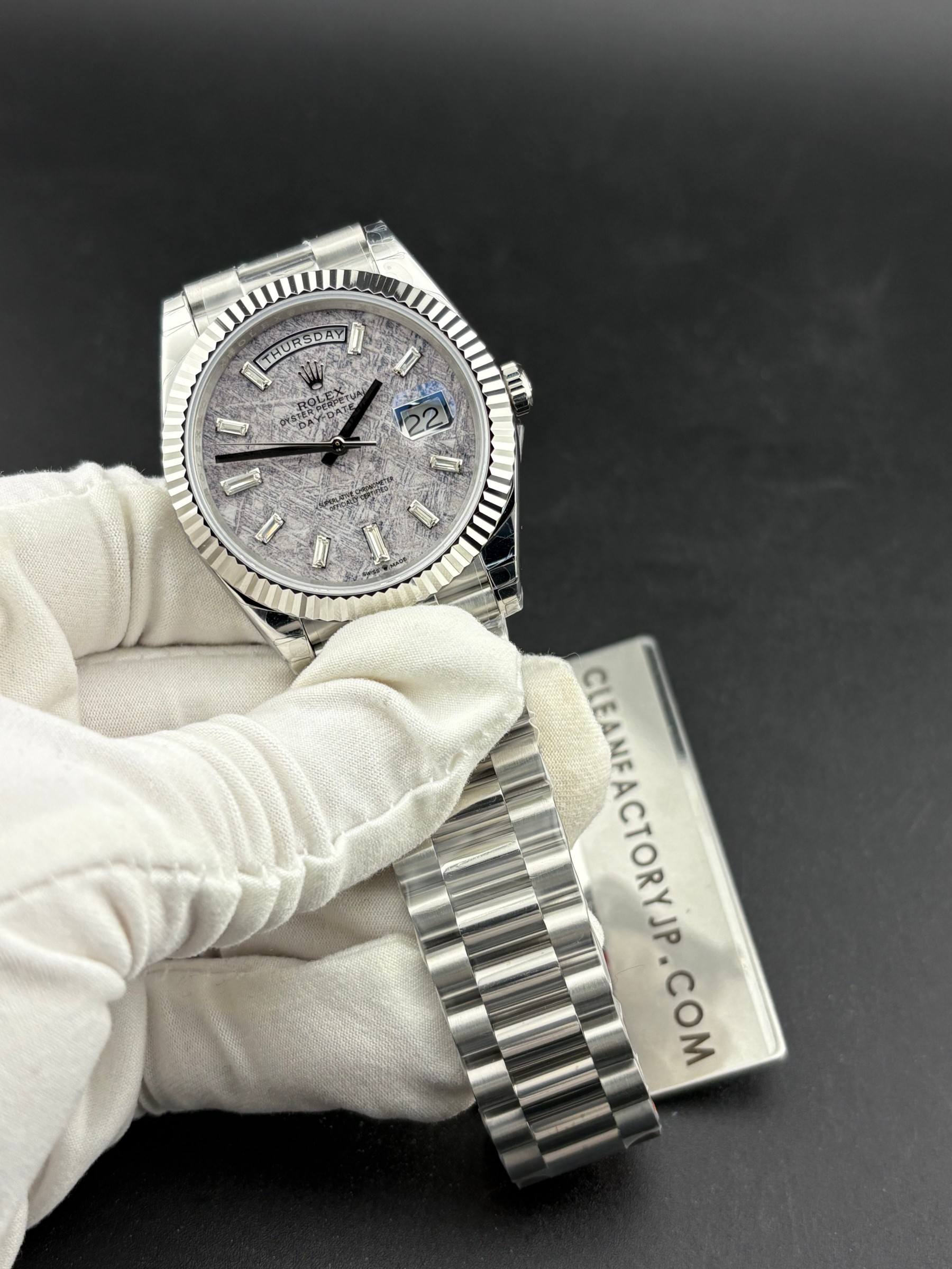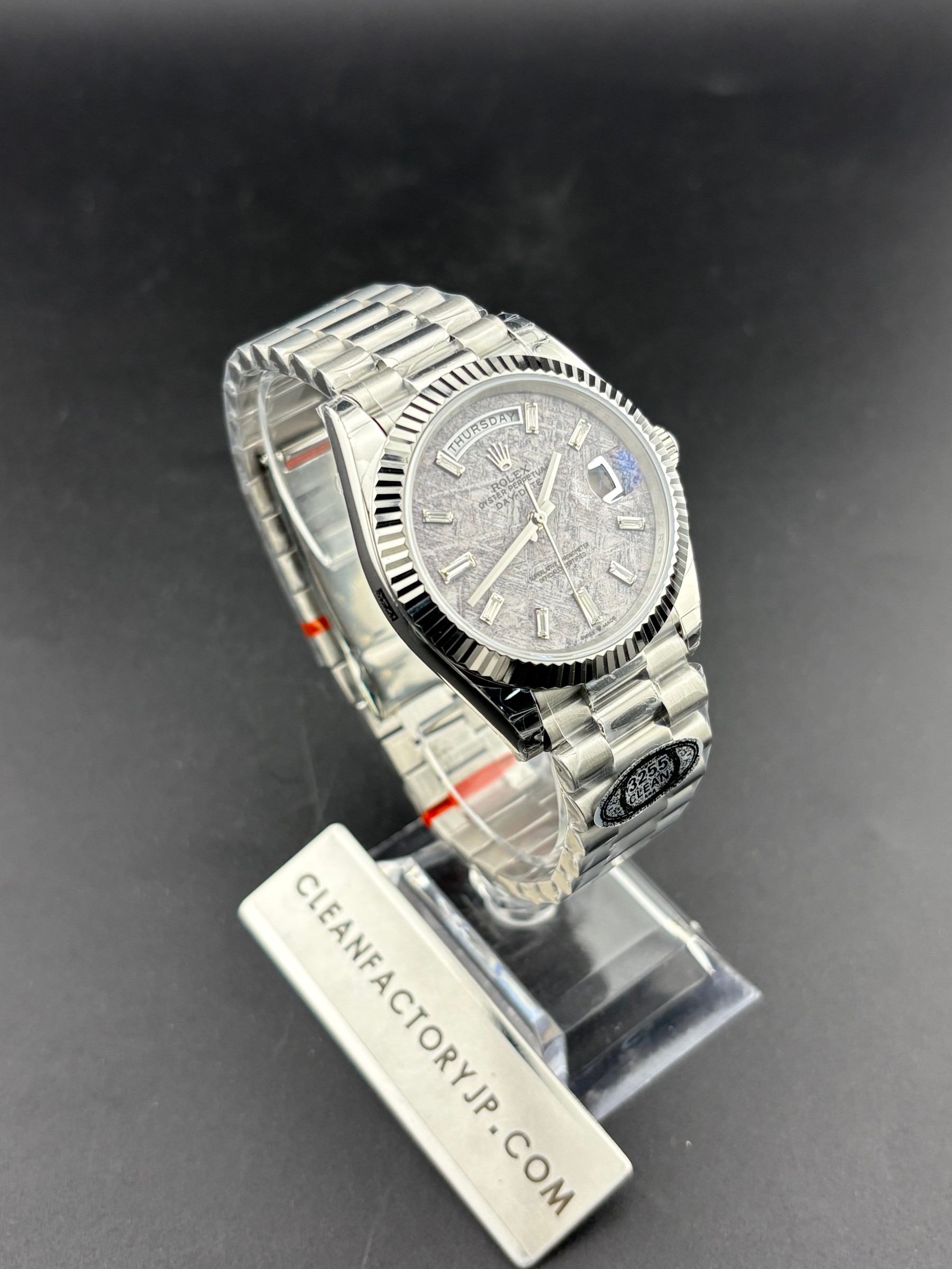スーパーコピー業の最高ランク精度1:1級製品:CLEANクリーン工場 ロレックスデイデイト プラチナ228239 40mmメテオライト文字盤ダイヤ目盛り フルーテッドベゼル