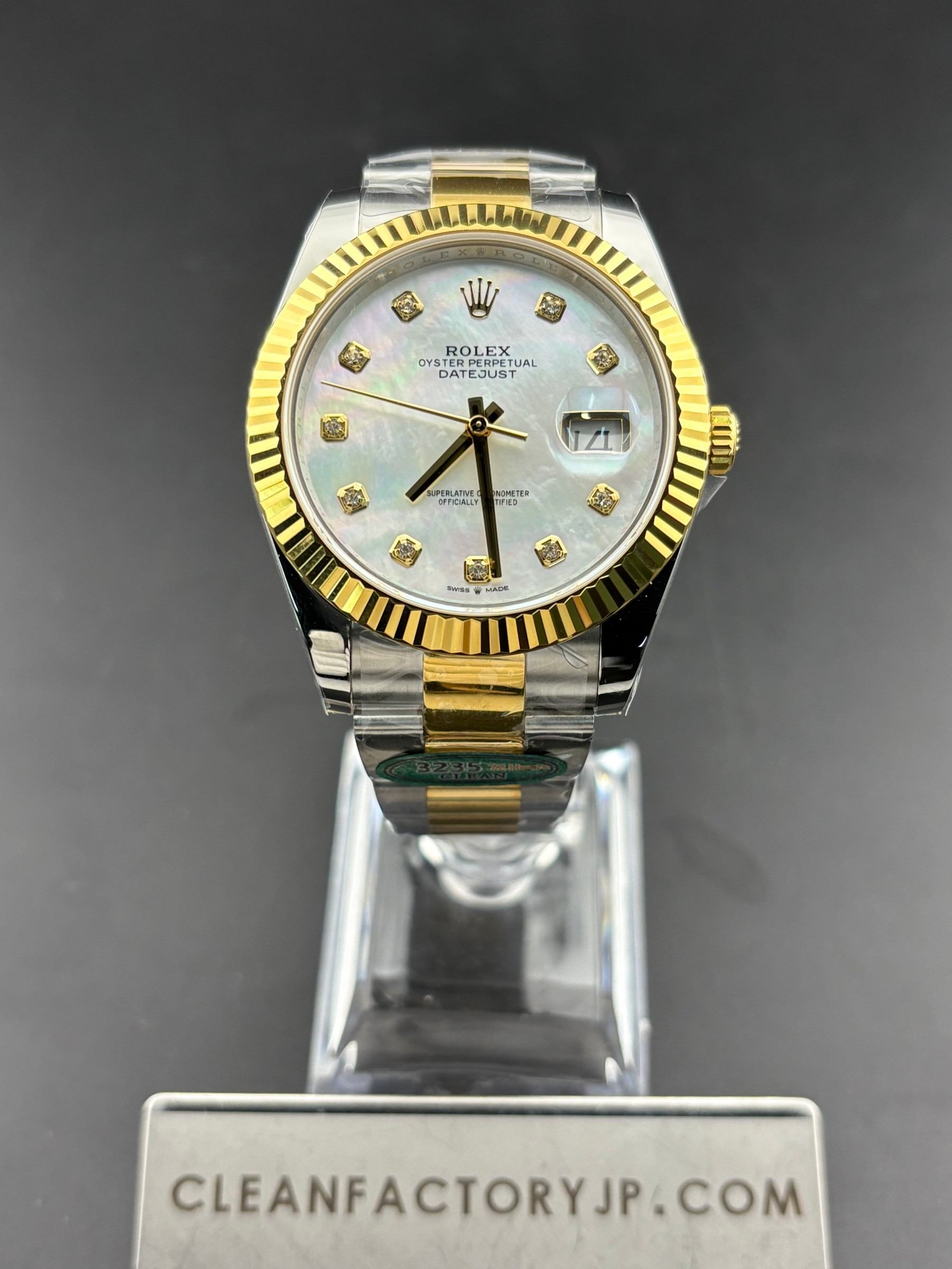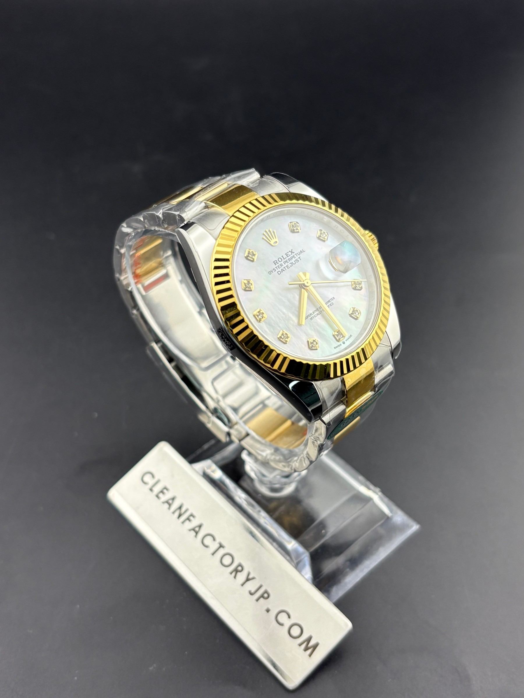 スーパーコピー業の最高ランク精度1:1級製品:CLEANクリーン工場 ロレックスデイトジャストコンビゴールド126333 41mmゴールド文字盤 フルーテッドベゼル オイスタープレスレット