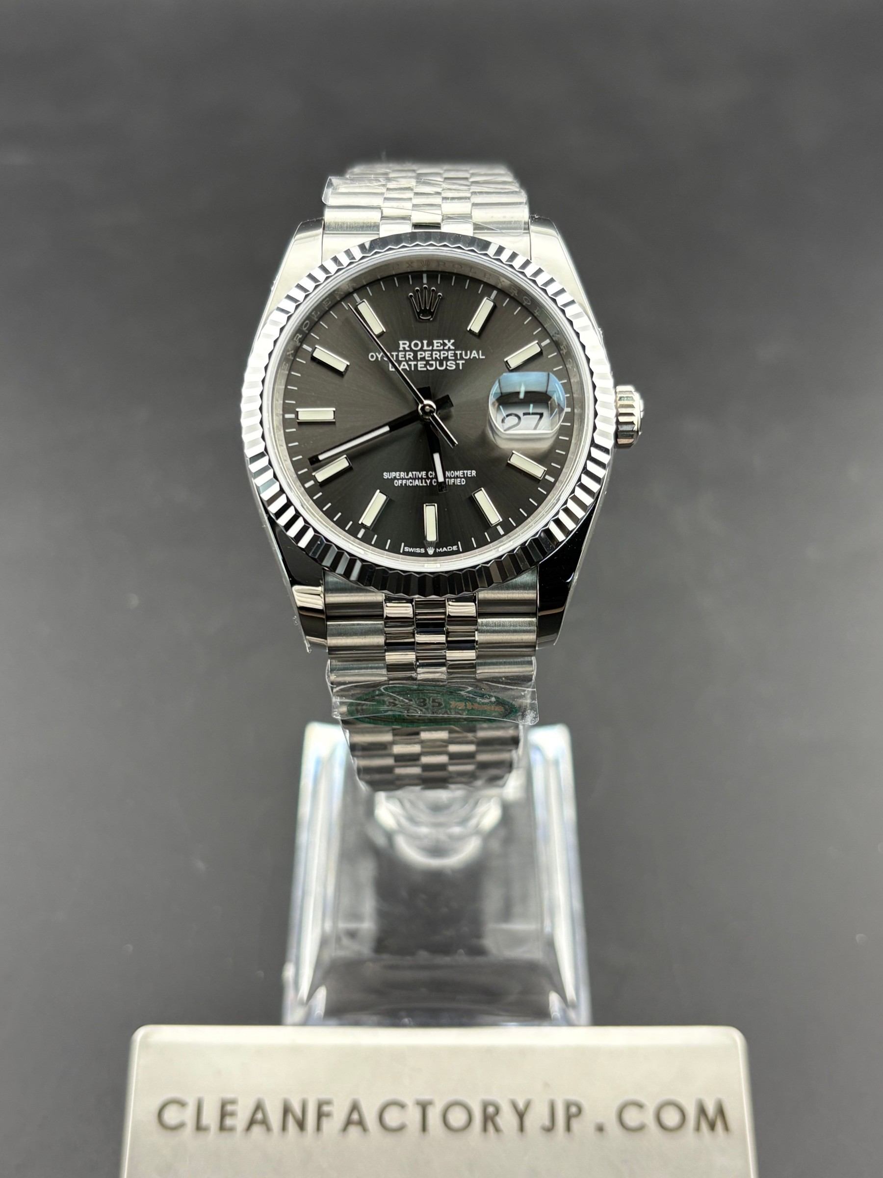 スーパーコピー業の最高ランク精度1:1級製品:CLEANクリーン工場 ロレックスデイトジャスト126334 41mmグレー文字盤 フルーテッドベゼル ジュビリープレスレット
