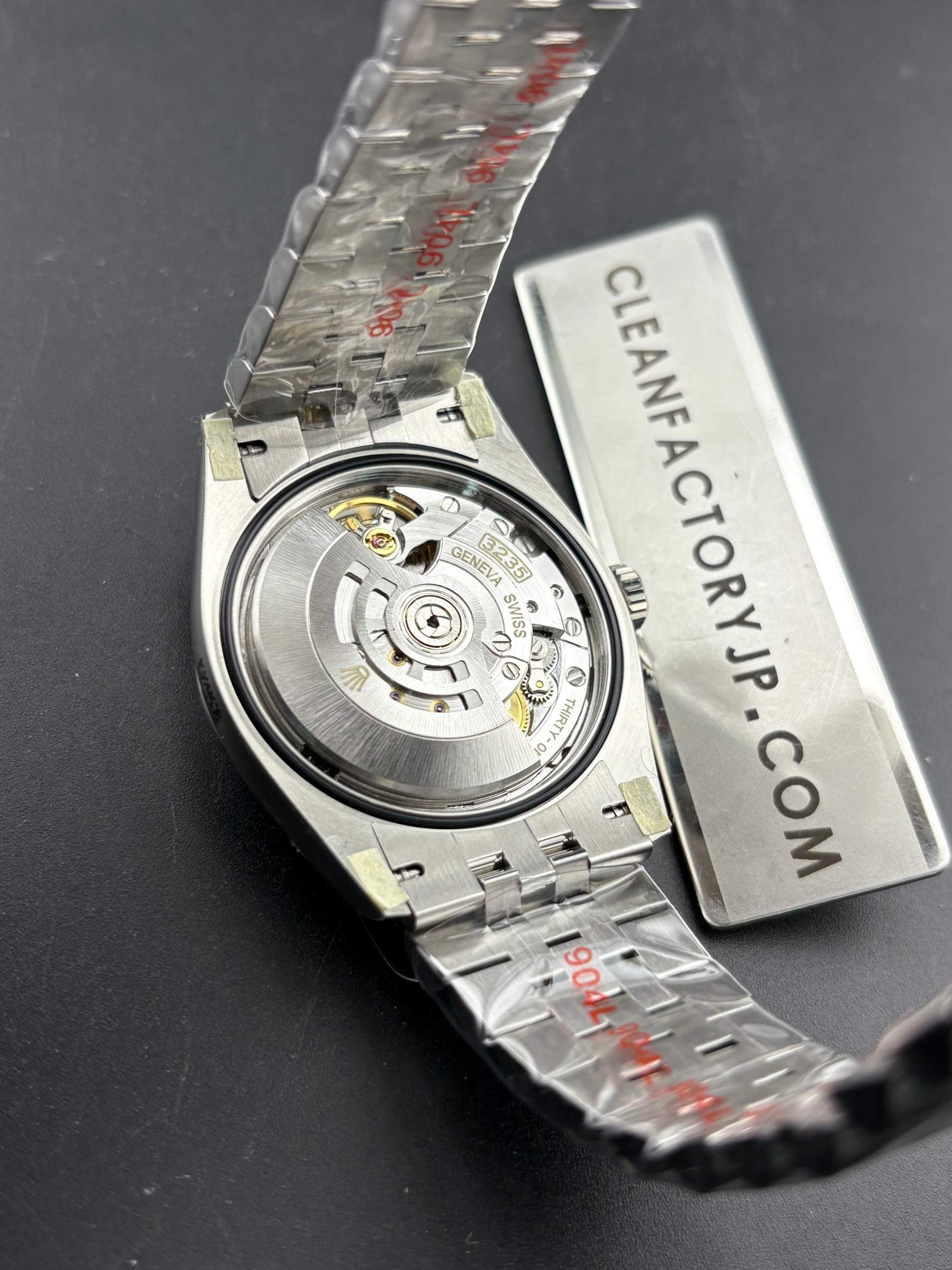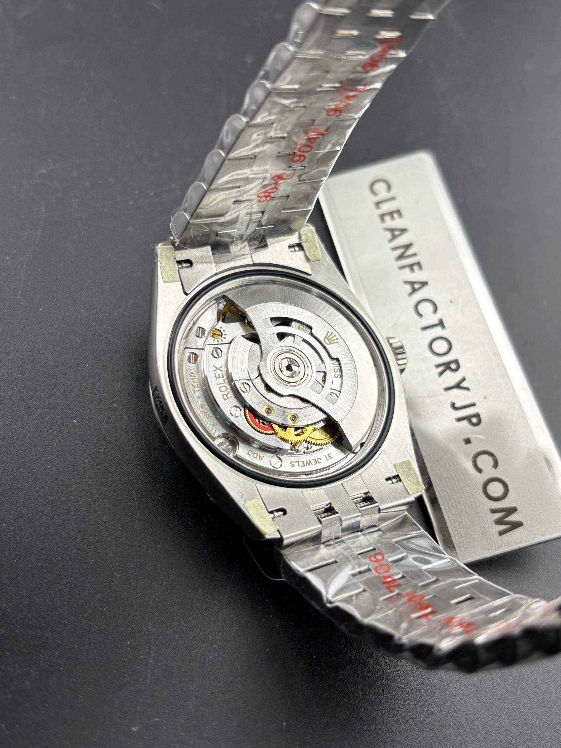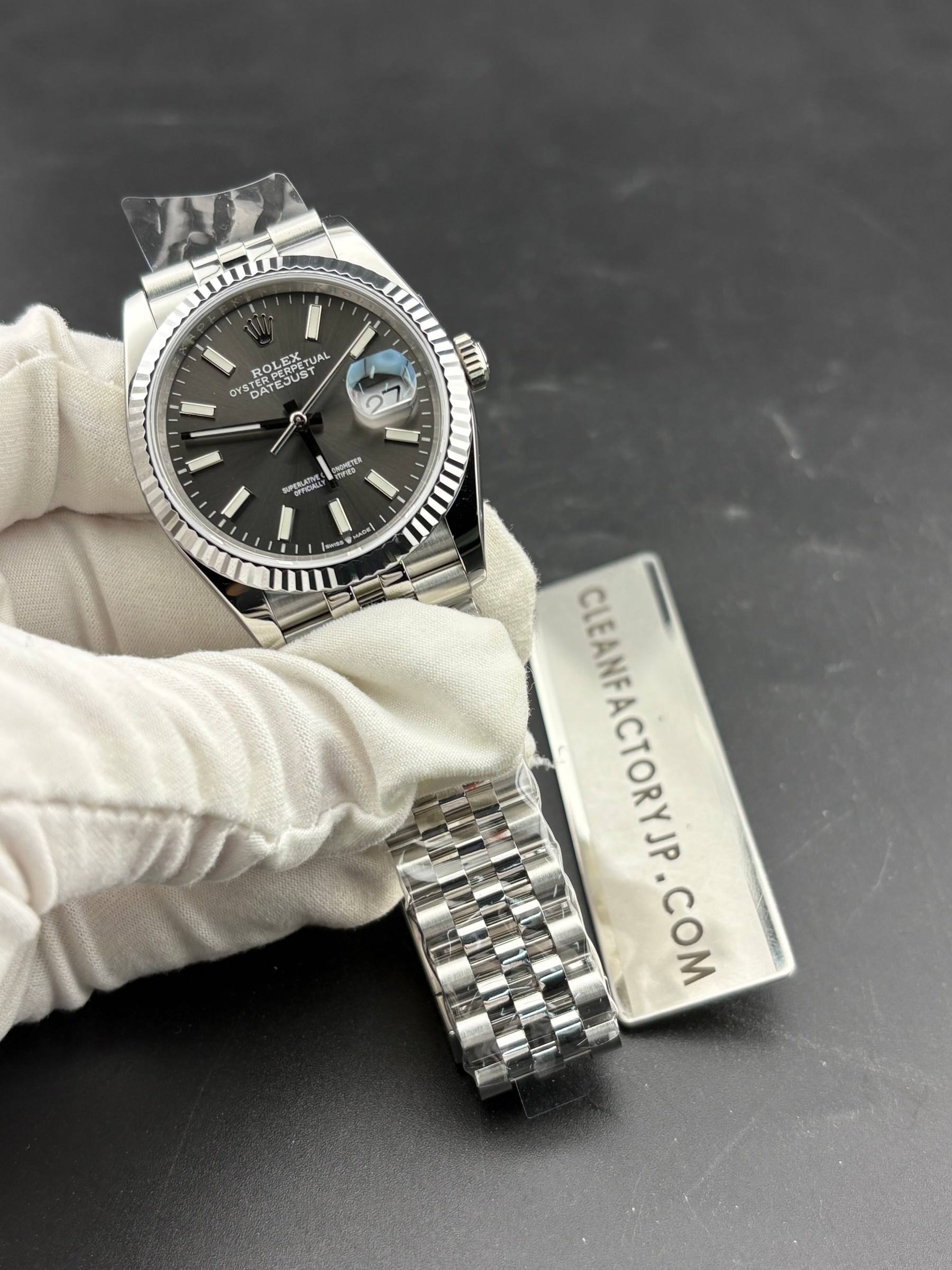 色々調べましたが、やっぱりCleanファクトリーのデイトジャストはレベルが違いますね。文字盤のフォントの厚み、カレンダーの数字の並び、リューズの刻印まで徹底的に作り込まれています。中のムーブメントも安定していて、今のところ時刻も狂っていません。デイトジャストのグレー文字盤は合わせる服を選ばないので、日常使いのメインウォッチとして愛用します。
