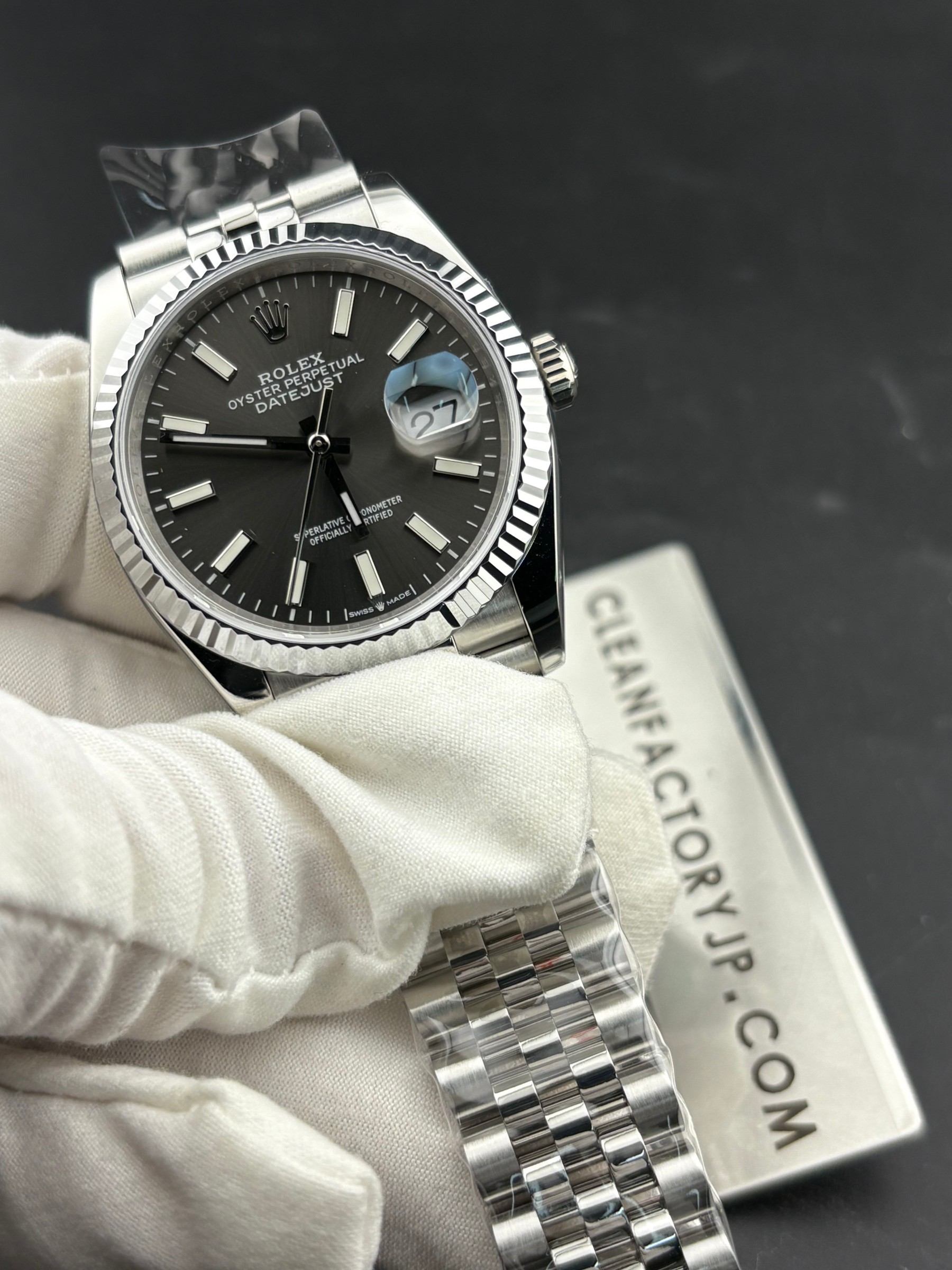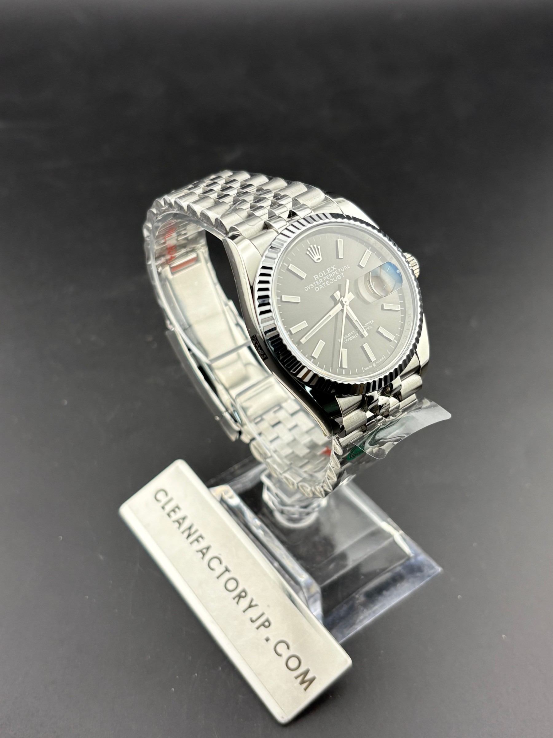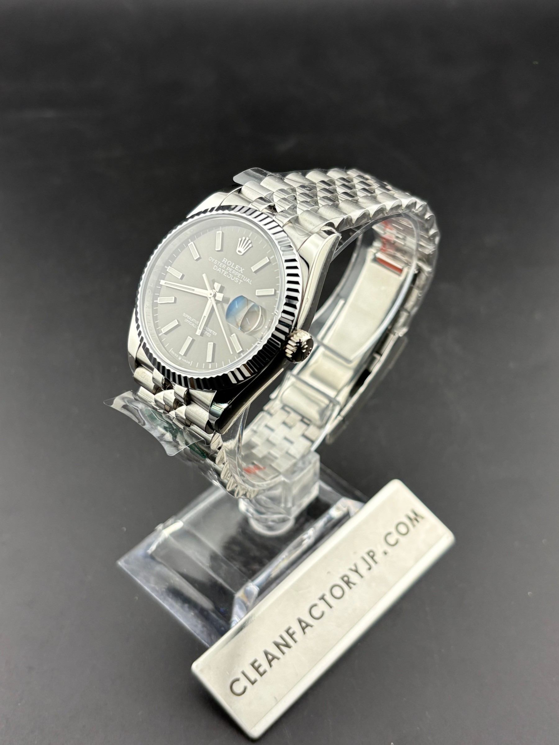 色々調べましたが、やっぱりCleanファクトリーのデイトジャストはレベルが違いますね。文字盤のフォントの厚み、カレンダーの数字の並び、リューズの刻印まで徹底的に作り込まれています。中のムーブメントも安定していて、今のところ時刻も狂っていません。デイトジャストのグレー文字盤は合わせる服を選ばないので、日常使いのメインウォッチとして愛用します。